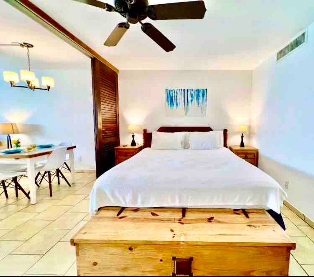 Welcome to Paradise! Sapphire Beach is one of the most relaxing beaches in the Caribbean. From the condo, you have a breathtaking view of the waters and the beach. Inside, you have all the comforts of a one bedroom apartment. The sleeping area can be enclosed by wooden partitions, leading into a comfortable living area with a full sized kitchen. We strive to make sure you have great stay!!